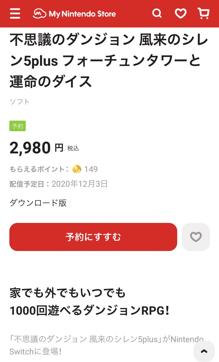 お ん スイッチ版 風来のシレン5plusのdl版の予約が始まったって 容量は541mbとのこと T Co ynfguywo